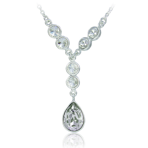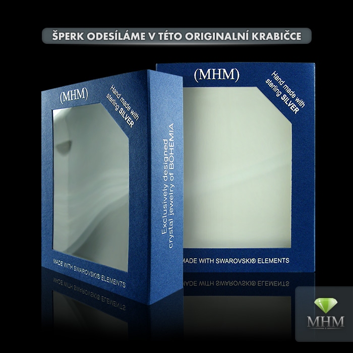 Náhrdelník je zdobený čirými krystaly Swarovski. Dominantní krystal má velikost 14 x 10 mm, a je vsazen do precizně postříbřeného kovodílu. Ostatní krystaly jsou o velikosti SS 24. Celková délka přívěsku je 55 mm. Tento přívěsek je dodáván na nastavitelném postříbřeném řetízku, jehož maximální délka může být až 50 cm. Šperk expedujeme ve značkové dárkové krabičce.