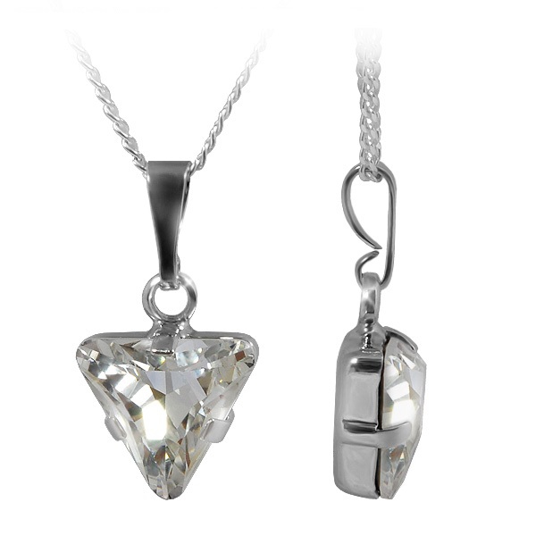 Náhrdelník je zdoben krystalem společnosti Swarovski. Rozměr přívěsku je 1 x 1 cm. Přívěsek je vyroben z ušlechtilého bižuterního kovu s mimořádně odolnou povrchovou úpravou - je potažen rhodiem. Přívěsek je dodáván na 45 cm dlouhém stříbrném řetízku ryzost 925/1000. Šperk je expedován v dárkové krabičce.