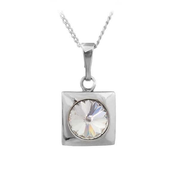 Náhrdelník je zdoben krystalem společnosti Swarovski - rivoli 8mm. Rozměr přívěsku je 1 x 1 cm. Přívěsek je vyroben z ušlechtilého bižuterního kovu s mimořádně odolnou povrchovou úpravou - je potažen rhodiem. Přívěsek je dodáván na nastavitelném rhodiovém řetízku 45cm- 53cm. Šperk je expedován v dárkové krabičce.