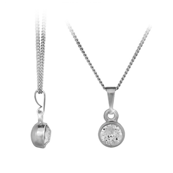Náhrdelník - drobný, je zdoben krystalem společnosti Swarovski. Rozměr přívěsku je 7mm. Přívěsek je vyroben z ušlechtilého bižuterního kovu s mimořádně odolnou povrchovou úpravou - je potažen rhodiem. Přívěsek je dodáván na nastavitelném rhodiovém řetízku 45cm- 53cm. Šperk je expedován v dárkové krabičce.