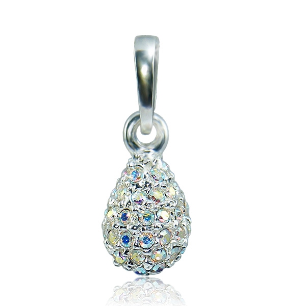 Náhrdelník je vykládaný drobnými krystaly Swarovski, které jsou ručně vsazovány do postříbřeného kovodílu. Tento přívěsek není vyroben z plastické hmoty, jak je to běžně k vidění na konkurenčních eshopech!! Velikost kapky je 15 mm. Na přívěsku je celkem 57 drobných krystalů s efektem Aurore Boreale. Náhrdelník je dodáván na 45 cm dlouhém stříbrném řetízku ryzosti 925/1000 včetně stříbrného očka (šlupny). Šperk expedujeme ve značkové dárkové krabičce.