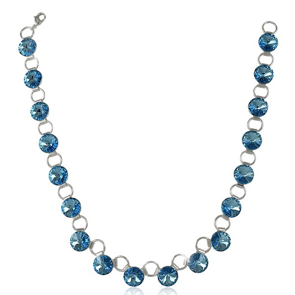 Masivní náhrdelník je vyroben z postříbřeného bižuterního kovu. Náhrdelník je osazen celkem 18 ks krystalů Rivoli o velikosti 12 mm. Výrobcem krystalů je společnost Swarovski.