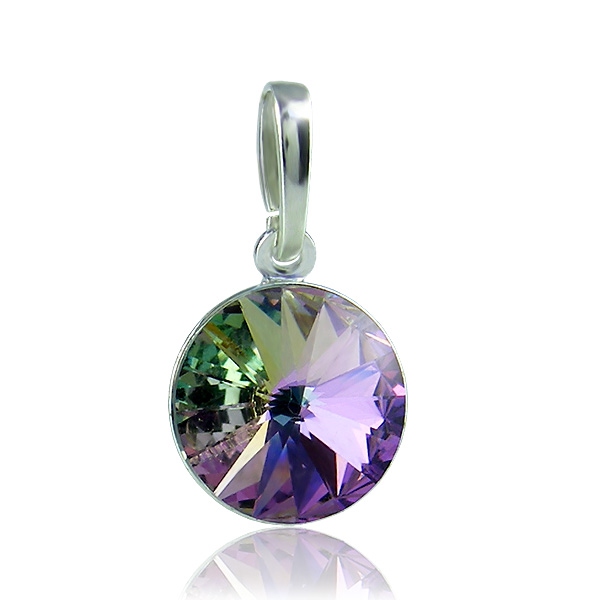 Náhrdelník Rivoli Vitrail Light je zdobený fialovým krystalem s vizuálními efekty, který vyrobila společnost Swarovski. Průměr krystalu, který je vsazen do postříbřeného kovodílu, je 12 mm. Náhrdelník je dodáván na 45 cm dlouhém stříbrném řetízku ryzosti 925/1000 včetně stříbrné šlupny. Šperk expedujeme ve značkové dárkové krabičce.