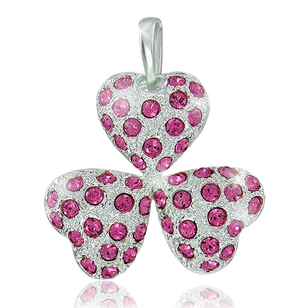 Náhrdelník je vyroben s motivem tří do sebe složených srdíček. Přívěsek náhrdelníku je vyroben z bižuterního kovu, který je potažen vrstvou stříbra. Přívěsek je zdoben 51 ks krystalů Swarovski, které mají růžovou barvu. Velikost každého srdíčka je 14 mm. Náhrdelník je dodáván na 45 cm dlouhém stříbrném řetízku ryzosti 925/1000 včetně šlupny (očka). Šperk expedujeme ve značkové dárkové krabičce.
