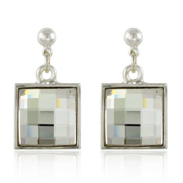 Náušnice jsou zdobeny krystaly společnosti Swarovski. Velikost krystalů je 12 x 12 mm. Krystaly jsou vsazeny do postříbřeného kovodílu. Náušnice jsou dodávány na puzetách s nasouvacím uzávěrem z postříbřeného bižuterního kovu. Dřík je vyroben z nejtvrdšího kovu na světě - titanu. Nepodléhá oxidaci a nedráždí pokožku - je antialergenní, což zaručuje bezproblémové denní nošení těchto náušnic.