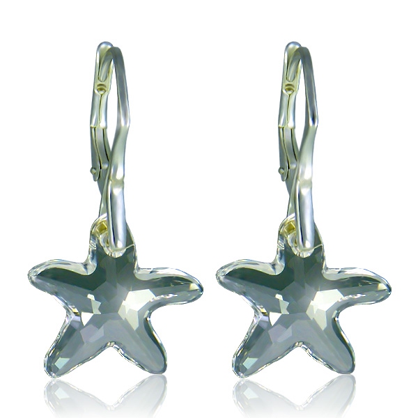 Náušnice jsou osazeny originálními krystaly z produkce společnosti Swarovski. Velikost krystalů je 16 mm. Náušnice jsou dodávány na stříbrné klapce ryzosti 925/1000 s povrchovou úpravou CLEAR.