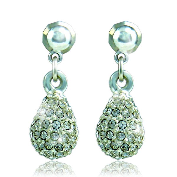 Náušnice jsou vykládany drobnými šatony čiré barvy, které vyrobila společnost Swarovski. Velikost jednotlivých kapek je 15 mm. Náušnice jsou dodávány na puzetkách s nasouvacím uzávěrem z postříbřeného bižuterního kovu. Dřík je vyroben z nejtvrdšího kovu na světě - titanu. Nepodléhá oxidaci a nedráždí pokožku - je antialergenní, což zaručuje bezproblémové denní nošení těchto náušnic. Náušnice jsou osazeny celkem 114 kusy šatonů Swarovski.