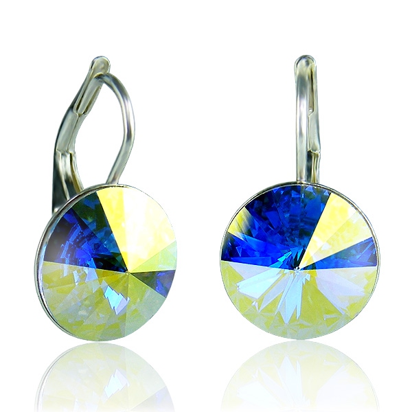 Náušnice jsou osazeny krystaly Swarovski s efektem Aurore Boreale. Průměr krystalů je 12 mm. Krystaly jsou vsazeny do kovodílů tuzemské výroby. Náušnice jsou dodávány volitelně v postříbřené či celostříbrné variantě.