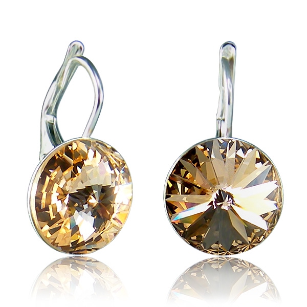 Oblíbené visací náušnice jsou zdobené originálními krystaly žluto - oranžové barvy, které vyrobila společnost Swarovski. Krystaly mají průměr 12 mm. Krystaly jsou vsazeny do kovodílů tuzemské výroby. Náušnice jsou dodávány volitelně v postříbřené či celostříbrné variantě.