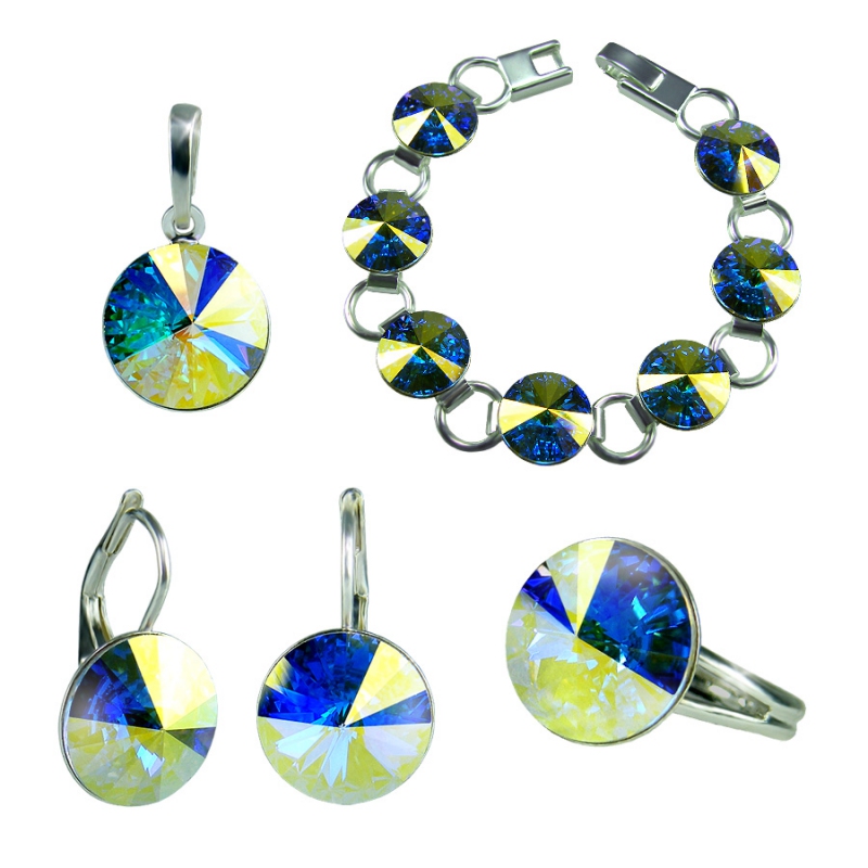 Velký set šperků vyrobený s krystaly Rivoli v odstínu Crystal AB společnosti Swarovski. Průměr užitých krystalů je 12 mm. Set obsahuje náušnice, náhrdelník, prsten a náramek. Celý set je dodáván ve dvou dárkových kazetách.