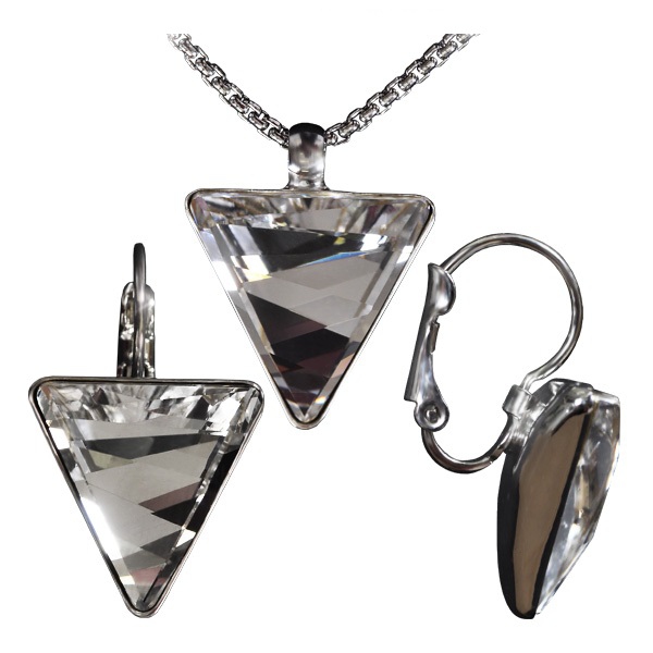 Náušnice jsou zdobeny krystaly společnosti Swarovski. Rozměr náušnic je 2,5 x1,5 cm. Přívěsky náušnic jsou vyrobeny z rhodiovaného ušlechtilého kovu. Velikost krystalu swarovski je 15,5 mm. Dodávány na klapce.