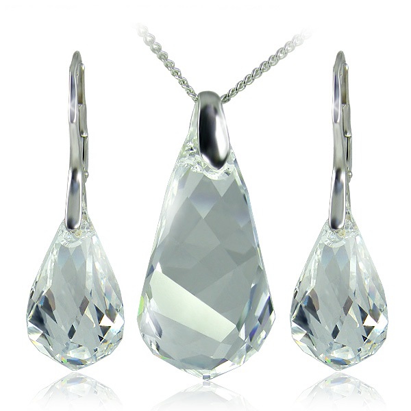 Náhrdelník je zdobený originálním krystalem čiré barvy z produkce společnosti Swarovski. Velikost přívěsku je 30 mm. Náhrdelník je dodáván na 45 cm dlouhém stříbrném řetízku ryzosti 925/1000 včetně šlupny (očka). Náušnice jsou osazeny krystaly čiré barvy Swarovski o velikosti 18 mm. Náušnice jsou dodávány na stříbrné klapce ryzosti 925/1000.