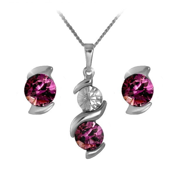 Přívěsek náhrdelníku je vyroben z ušlechtilého bižuterního kovu, který je potažen vrstvou stříbra. Celková velikost přívěsku je 32 x 12 mm. Přívěsek je dekorován 2 krystaly společnosti Swarovski o rozměrech 8 a 6 mm. Tento šperk je dodáván se stříbrným řetizkem ryzosti 925/1000 s celkovou délkou 45 cm.