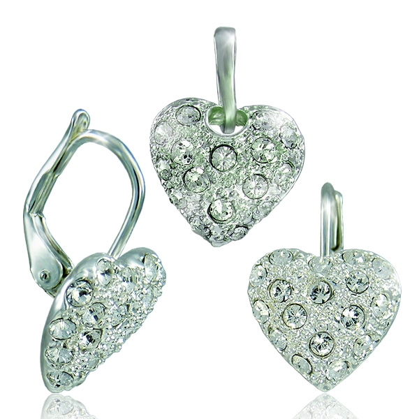 Náušnice jsou vykládané drobnými šatony Swarovski. Velikost srdcí je 14 mm. Náušnice jsou dodávány na postříbřené klapce.