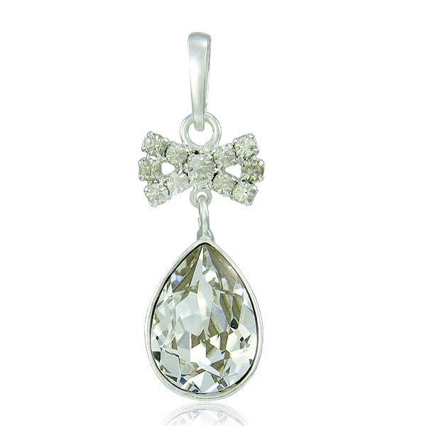 Štrasový náhrdelník Karin Crystal je zdoben krystalem společnosti Swarovski o velikosti 14 x 10 mm, který je vsazen do kvalitně postříbřeného kovodílu tuzemské výroby. Náhrdelník je zdoben štrasovou ozdobou ve tvaru mašličky. Tento šperk je dodáván na 45 cm dlouhém masívním stříbrném řetízku o ryzosti 925/1000 včetně šlupny (očka).
